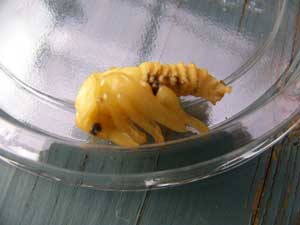 | 色がずいぶん濃い2体です。、もうすぐなのかな? | こちらは、もうすぐ蛹になりそうな・・・ | |